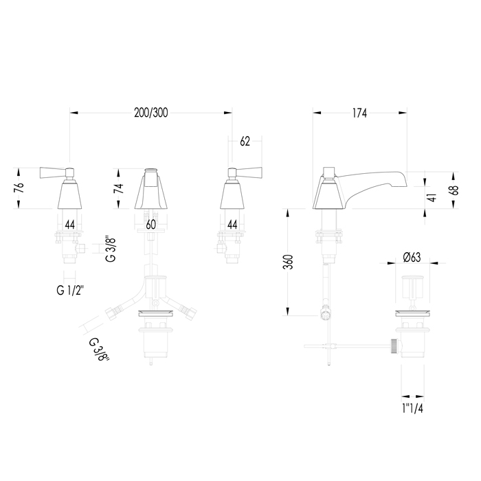 Devon&Devon Vip Time Смеситель для раковины на 3 отв., цвет светлое золото 2VPTIME200OT и другие сантехнические изделия бренда характеризует надежность, высокое качество и продолжительный срок службы. Изделие в стилистике арт-деко впечатляюще будет смотреться в различных цветовых решениях помещения.