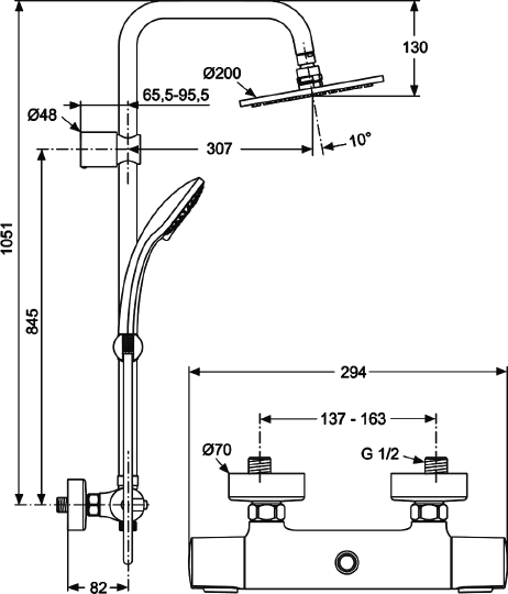 Ideal Standard Ideal duo Душевая стойка: термостат, верхний душ, лейка, штанга 105 см, цвет: chrome A5686AA и другие сантехнические изделия бренда характеризует надежность, высокое качество и продолжительный срок службы. Изделие в стилистике минимализм впечатляюще будет смотреться в различных цветовых решениях помещения.