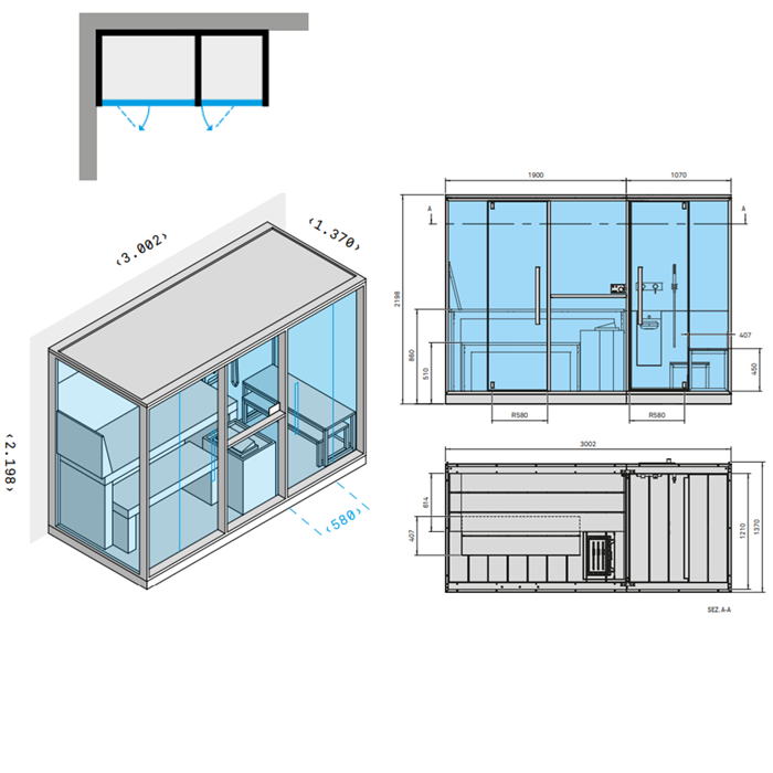 Закажите Effegibi Mid Сауна с хаммам и душем, угловая SX, 300x137xh220 см, отделка Soft Sand LO 70 01 0002 от производителя Effegibi, коллекция Mid в салоне европейской сантехники Дизайн Сантехники с быстрой доставкой по Москве. Представлены подробные характеристики и фотографии, которые позволят сделать правильный выбор и заказать товар.