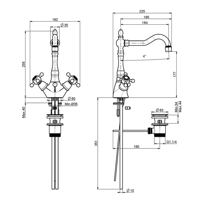 Fima Carlo Frattini Elizabeth Смеситель на раковину, цвет: никель брашированный F5091SN и другие сантехнические изделия бренда характеризует надежность, высокое качество и продолжительный срок службы. Изделие в стилистике прованс впечатляюще будет смотреться в различных цветовых решениях помещения.