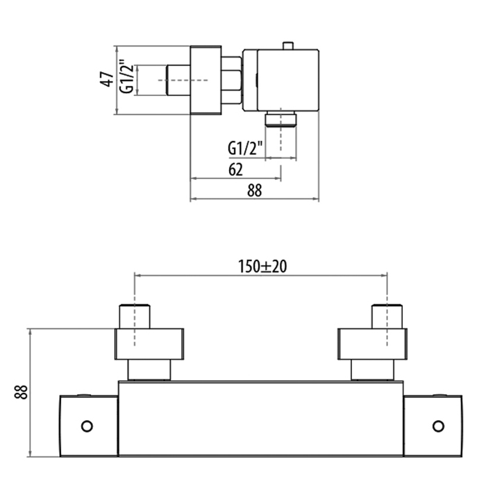 Gattoni Termostatici Термостатический смеситель для душа, выпуск снизу, цвет: хром TSQU52500C0cr и другие сантехнические изделия бренда характеризует надежность, высокое качество и продолжительный срок службы. Изделие в стилистике hi-tech впечатляюще будет смотреться в различных цветовых решениях помещения.