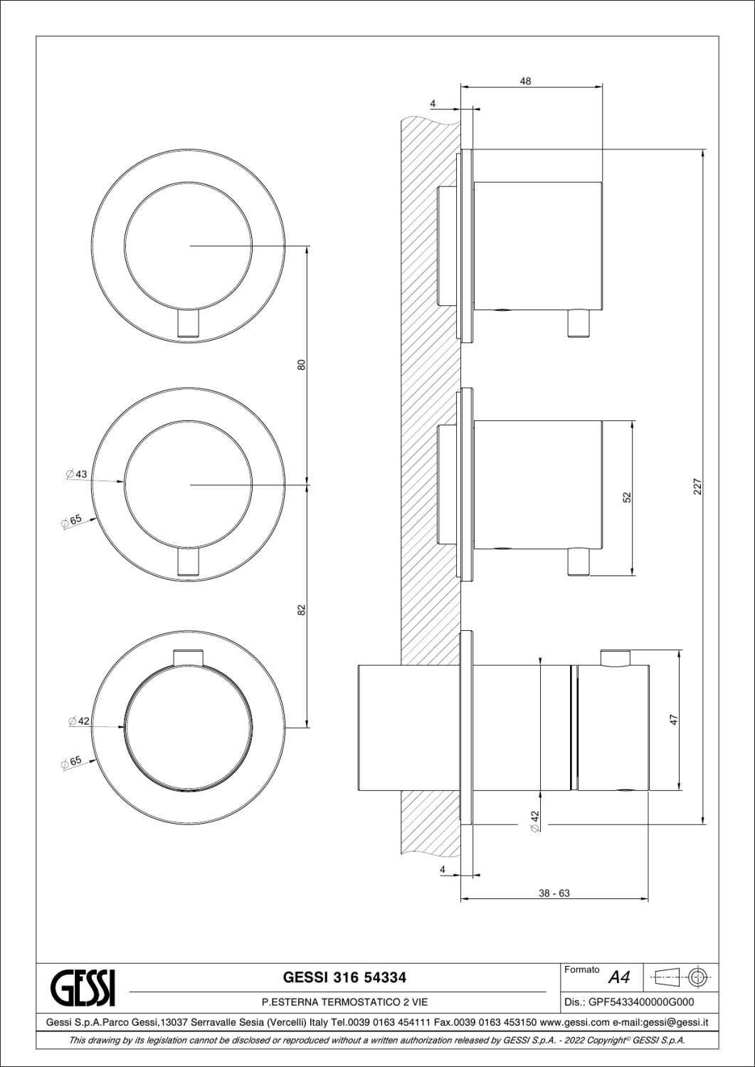 Gessi 316 Верхний душ d30 см, настенный кронштейн, 1 вид струи, цвет: warm bronze brushed PVD 54145#726