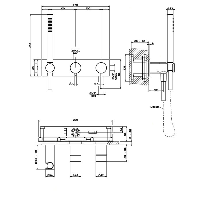 Gessi 316 Bath-Shower Смеситель для ванны встраиваемый, 2 потребителя, лейка, цвет: steel brushed 54038#239 и другие сантехнические изделия бренда характеризует надежность, высокое качество и продолжительный срок службы. Изделие в стилистике лофт впечатляюще будет смотреться в различных цветовых решениях помещения.
