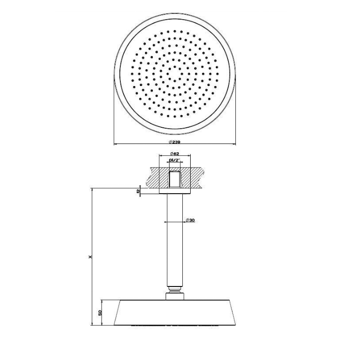Gessi Cono Верхний душ 23,9 см 1 вид струи, кронштейн потолочный высота под заказ, цвет: chrome 45150#031 и другие сантехнические изделия бренда характеризует надежность, высокое качество и продолжительный срок службы. Изделие в стилистике неоклассика впечатляюще будет смотреться в различных цветовых решениях помещения.