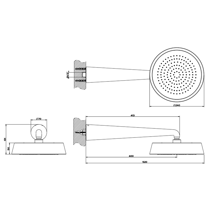 Gessi Cono Верхний душ 24 см 1 вид струи, кронштейн настенный 40 см, цвет: matte black 45151#299 и другие сантехнические изделия бренда характеризует надежность, высокое качество и продолжительный срок службы. Изделие в стилистике неоклассика впечатляюще будет смотреться в различных цветовых решениях помещения.