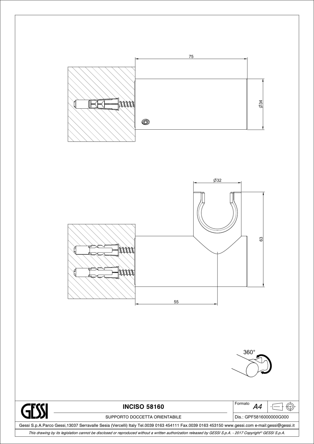Gessi Inciso Смеситель для душа встраиваемый на 1 потребителя, внешняя часть, цвет: chrome 58109#031