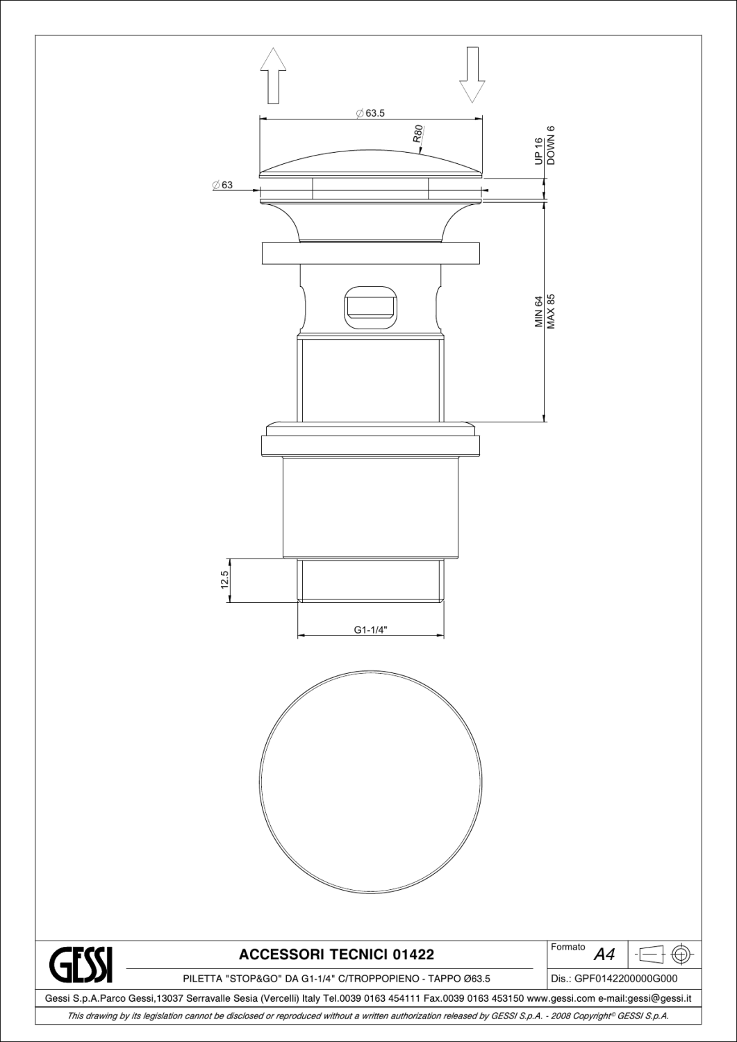 Gessi Technical Accessories Донный клапан свободного слива для раковины без перелива, цвет: chrome 01376#031