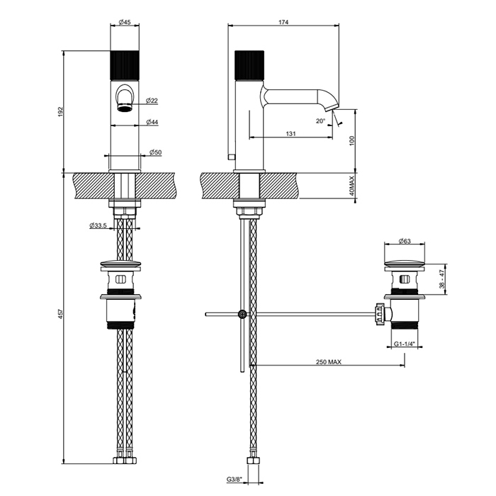 Gessi Habito Смеситель для раковины, с донным клапаном, длина излива 13,1 см, цвет: black metal PVD 70501#706 и другие сантехнические изделия бренда характеризует надежность, высокое качество и продолжительный срок службы. Изделие в стилистике минимализм впечатляюще будет смотреться в различных цветовых решениях помещения.