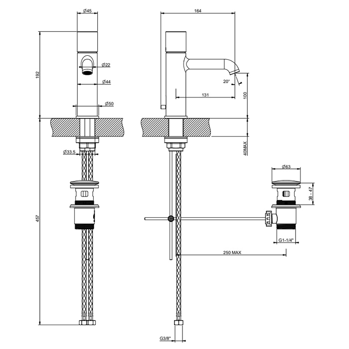 Gessi Habito Смеситель для раковины встр., без вн. части, длина излива 20,1 см, цвет: matte black 70088#299