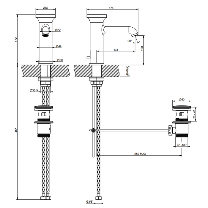 Gessi Origini Смеситель для раковины, с д/к, длина излива 13,1 см, цвет: finox brushed nickel 66001#149 и другие сантехнические изделия бренда характеризует надежность, высокое качество и продолжительный срок службы. Изделие в стилистике экостиль впечатляюще будет смотреться в различных цветовых решениях помещения.