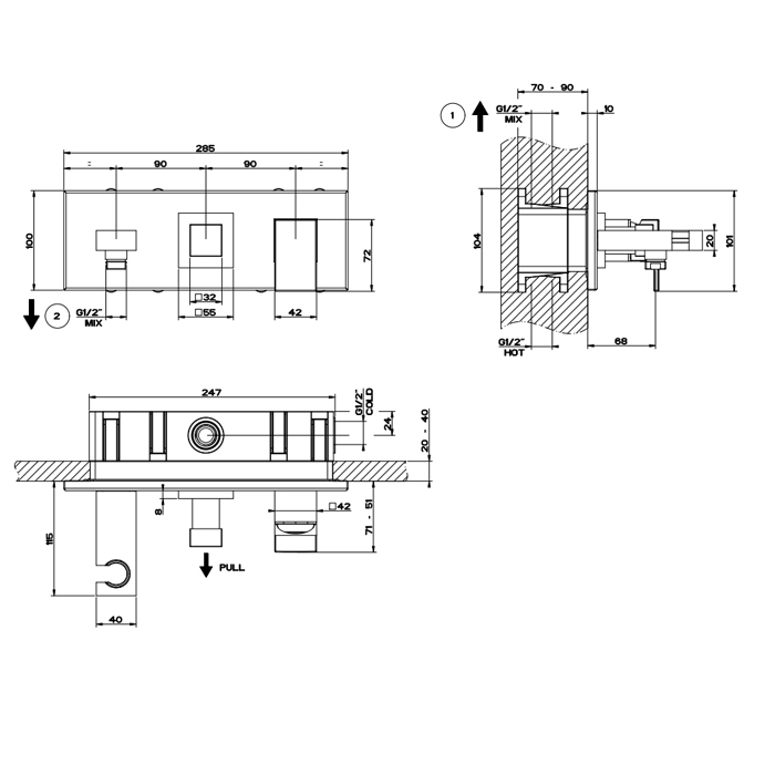 Gessi Rettangolo Смеситель для ванны встраиваемый, 2 потребителя, лейка, цвет: matte black 44911#299 и другие сантехнические изделия бренда характеризует надежность, высокое качество и продолжительный срок службы. Изделие в стилистике минимализм впечатляюще будет смотреться в различных цветовых решениях помещения.