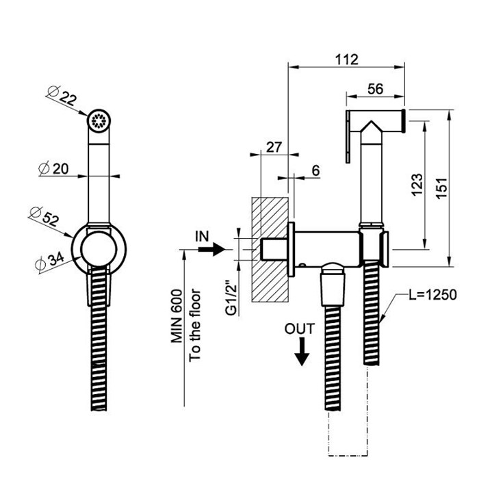 Gessi Transparenze Гигиенический душ, цвет: copper brushed PVD 14331#708 и другие сантехнические изделия бренда характеризует надежность, высокое качество и продолжительный срок службы. Изделие в стилистике минимализм впечатляюще будет смотреться в различных цветовых решениях помещения.