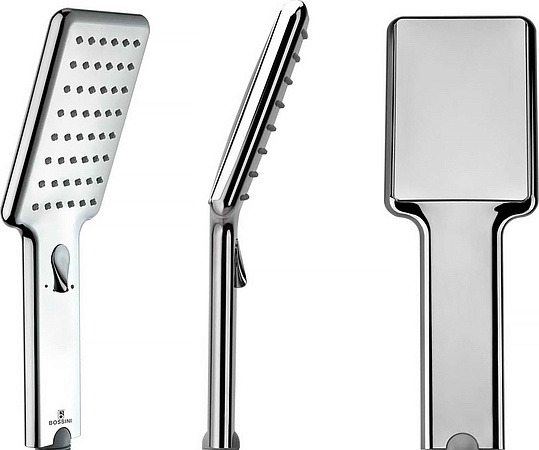 Bossini Agua Life Душевой гарнитур: ручной душ, держатель с подводом воды, шланг 150см, цвет: chrome C13002.030 и другие сантехнические изделия бренда характеризует надежность, высокое качество и продолжительный срок службы. Изделие в стилистике hi-tech впечатляюще будет смотреться в различных цветовых решениях помещения.