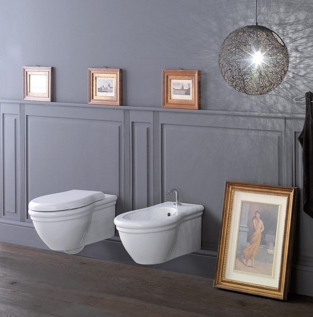 Globo Paestum Унитаз подвесной без крышки, с креплением, 38x57 см, цвет: белый глянцевый PAS03BI и другие сантехнические изделия бренда характеризует надежность, высокое качество и продолжительный срок службы. Изделие в стилистике английская классика впечатляюще будет смотреться в различных цветовых решениях помещения.