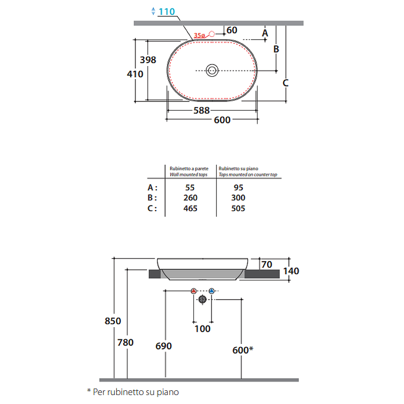 Globo T-Edge Раковина встраиваемая сверху 60x41 см, без перелива, без д/к, цвет: белый глянцевый B6O61BO и другие сантехнические изделия бренда характеризует надежность, высокое качество и продолжительный срок службы. Изделие в стилистике минимализм впечатляюще будет смотреться в различных цветовых решениях помещения.