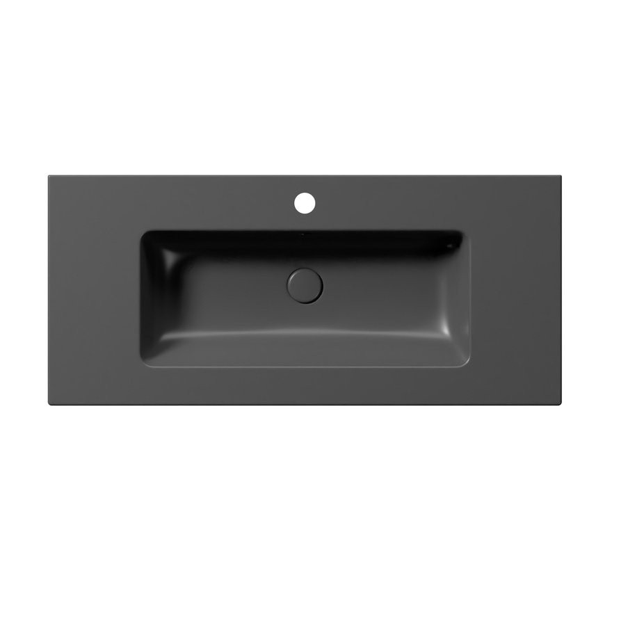 Раковина подвесная/накладная GSI Pura 8886126 102x46 см, с переливом, с отверстием под смеситель, для крепежа FLAVABO, цвет черный матовый Ardesia: