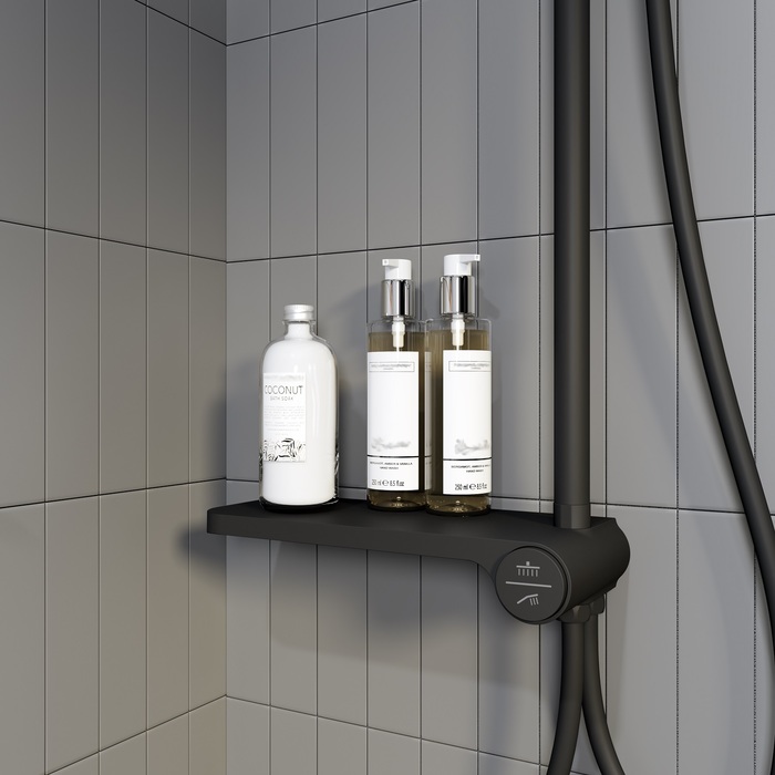 Iddis Ray Душевая стойка с верхним душем 30х36х115h см, цвет: черный RAYMS3Fi76 и другие сантехнические изделия бренда характеризует надежность, высокое качество и продолжительный срок службы. Изделие в стилистике минимализм впечатляюще будет смотреться в различных цветовых решениях помещения.