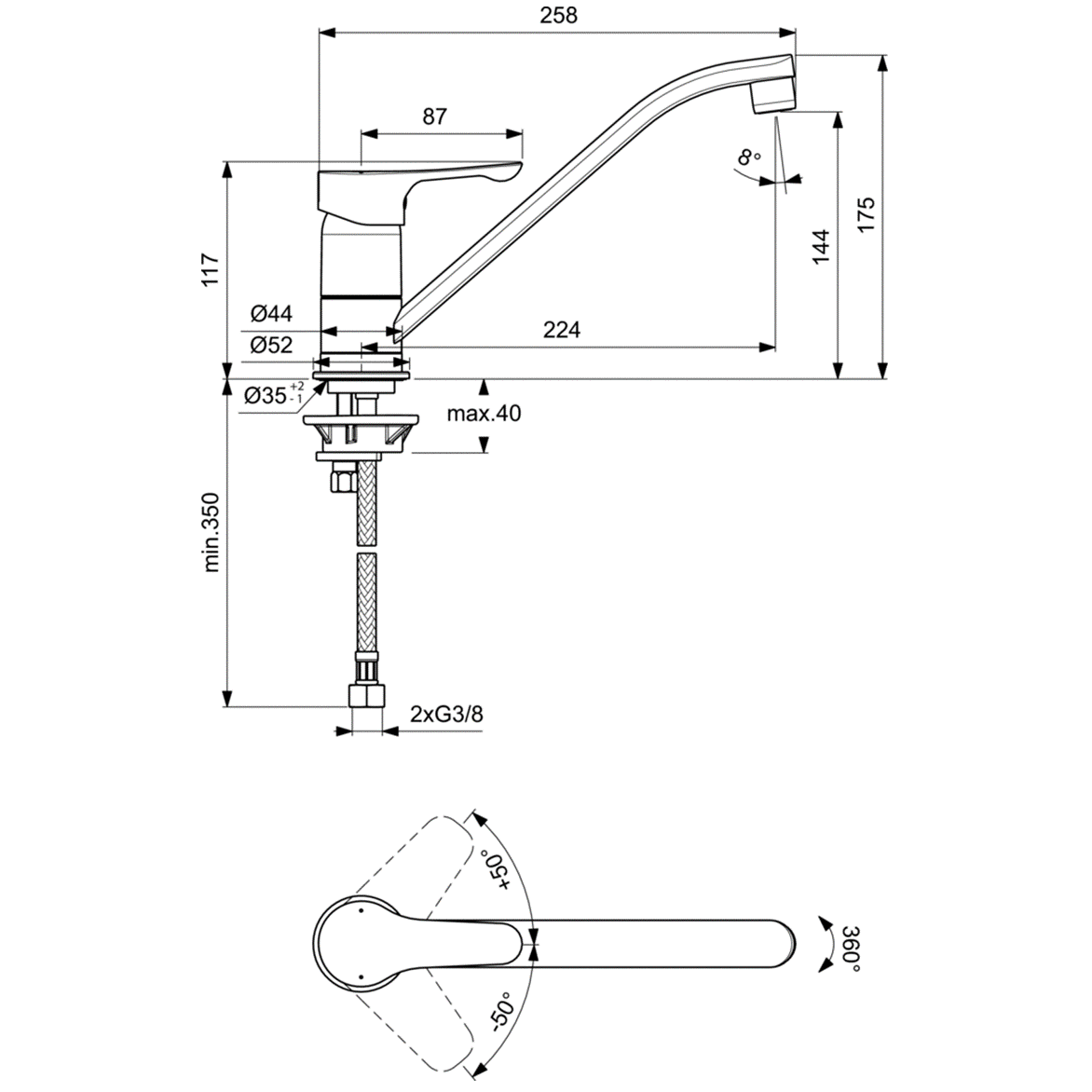 Ideal Standard Alpha Смеситель для кухни, цвет: chrome BC490AA и другие сантехнические изделия бренда характеризует надежность, высокое качество и продолжительный срок службы. Изделие в стилистике минимализм впечатляюще будет смотреться в различных цветовых решениях помещения.