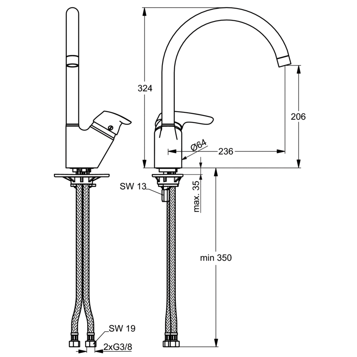 Ideal Standard Cerasprint New Смеситель для кухни, цвет: chrome B7473AA и другие сантехнические изделия бренда характеризует надежность, высокое качество и продолжительный срок службы. Изделие в стилистике минимализм впечатляюще будет смотреться в различных цветовых решениях помещения.