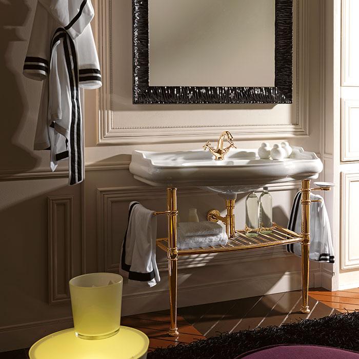 Kerasan Retro Консоль 100x54 см, под раковину на 100 см, с полкой, цвет: Oro 730091 и другие сантехнические изделия бренда характеризует надежность, высокое качество и продолжительный срок службы. Изделие в стилистике английская классика впечатляюще будет смотреться в различных цветовых решениях помещения.