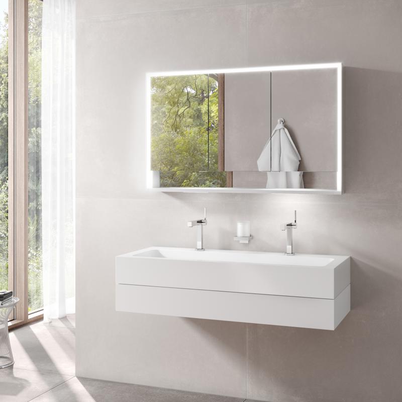 Keuco Royal Lumos Зеркальный шкаф, подвесной 120x16,5x73,5h см, цвет: серебро 14315 172301 и другие сантехнические изделия бренда характеризует надежность, высокое качество и продолжительный срок службы. Изделие в стилистике минимализм впечатляюще будет смотреться в различных цветовых решениях помещения.