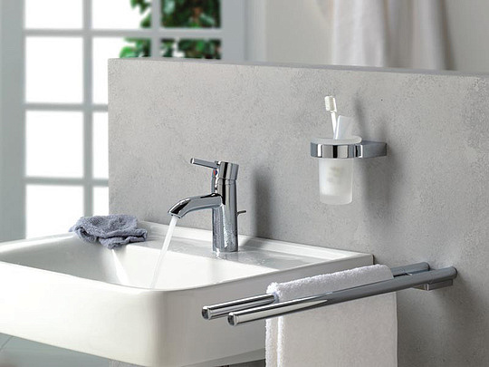 Kludi A-XES Стакан для зубных щеток, подвесной, стеклянный, цвет: хром 4897505 и другие сантехнические изделия бренда характеризует надежность, высокое качество и продолжительный срок службы. Изделие в стилистике hi-tech впечатляюще будет смотреться в различных цветовых решениях помещения.