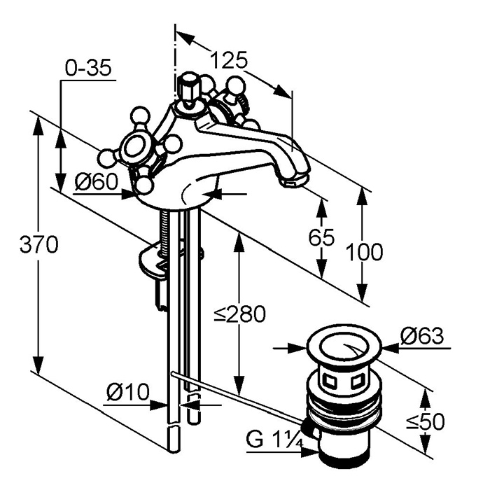 Kludi 1926 Смеситель для раковины на 3 отверстия, с д/к, длина излива 14,5 см, цвет: хром 510460520