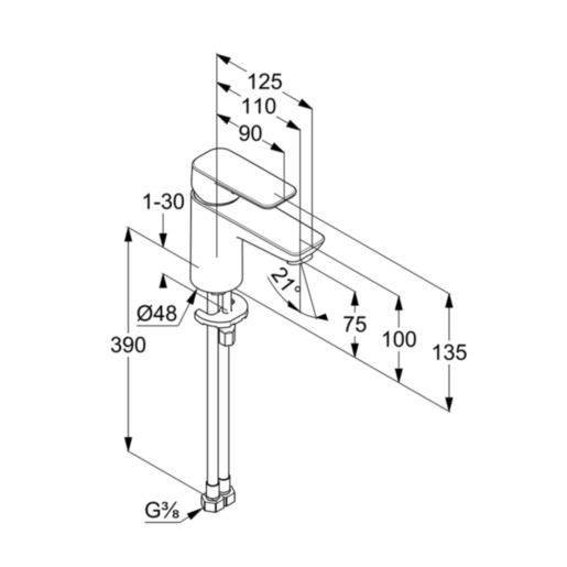 Kludi Pure&Style Смеситель для раковины, без д/к, высота излива 21,5 см, цвет: черный матовый 402963975