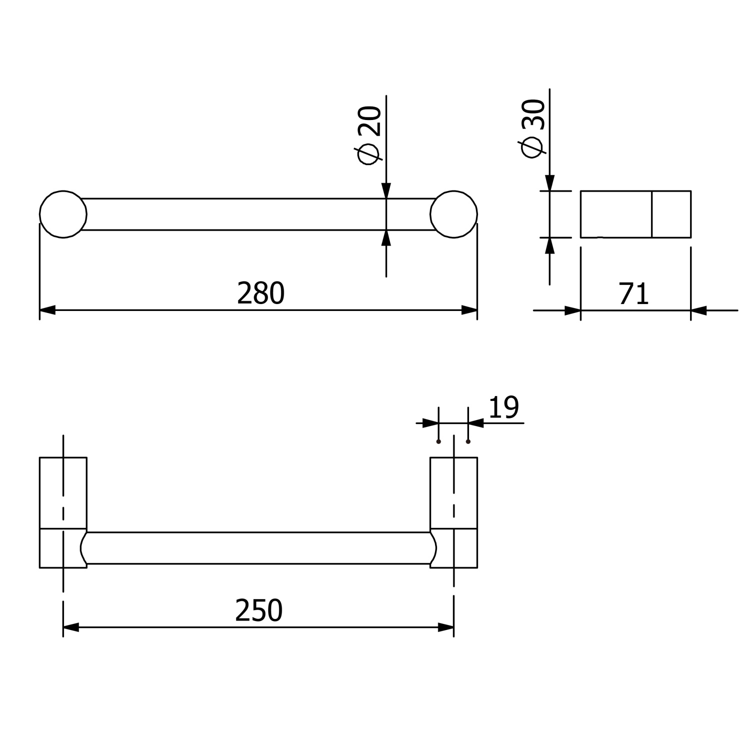 Kludi Vela R Полотенцедержатель 28 см, подвесной, цвет: черный матовый 5898139 и другие сантехнические изделия бренда характеризует надежность, высокое качество и продолжительный срок службы. Изделие в стилистике минимализм впечатляюще будет смотреться в различных цветовых решениях помещения.