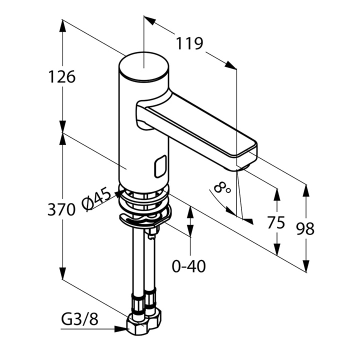 Kludi Zenta SL Смеситель для раковины, сенсор, без д/к, длина излива 11,9 см, цвет: хром 3820205