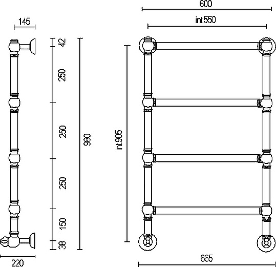 Margaroli Armonia 9-442 Полотенцесушитель водяной для ГВС 62,5х98h (int 55), нижнее, цвет: old brass 94425504OBN и другие сантехнические изделия бренда характеризует надежность, высокое качество и продолжительный срок службы. Изделие в стилистике прованс впечатляюще будет смотреться в различных цветовых решениях помещения.