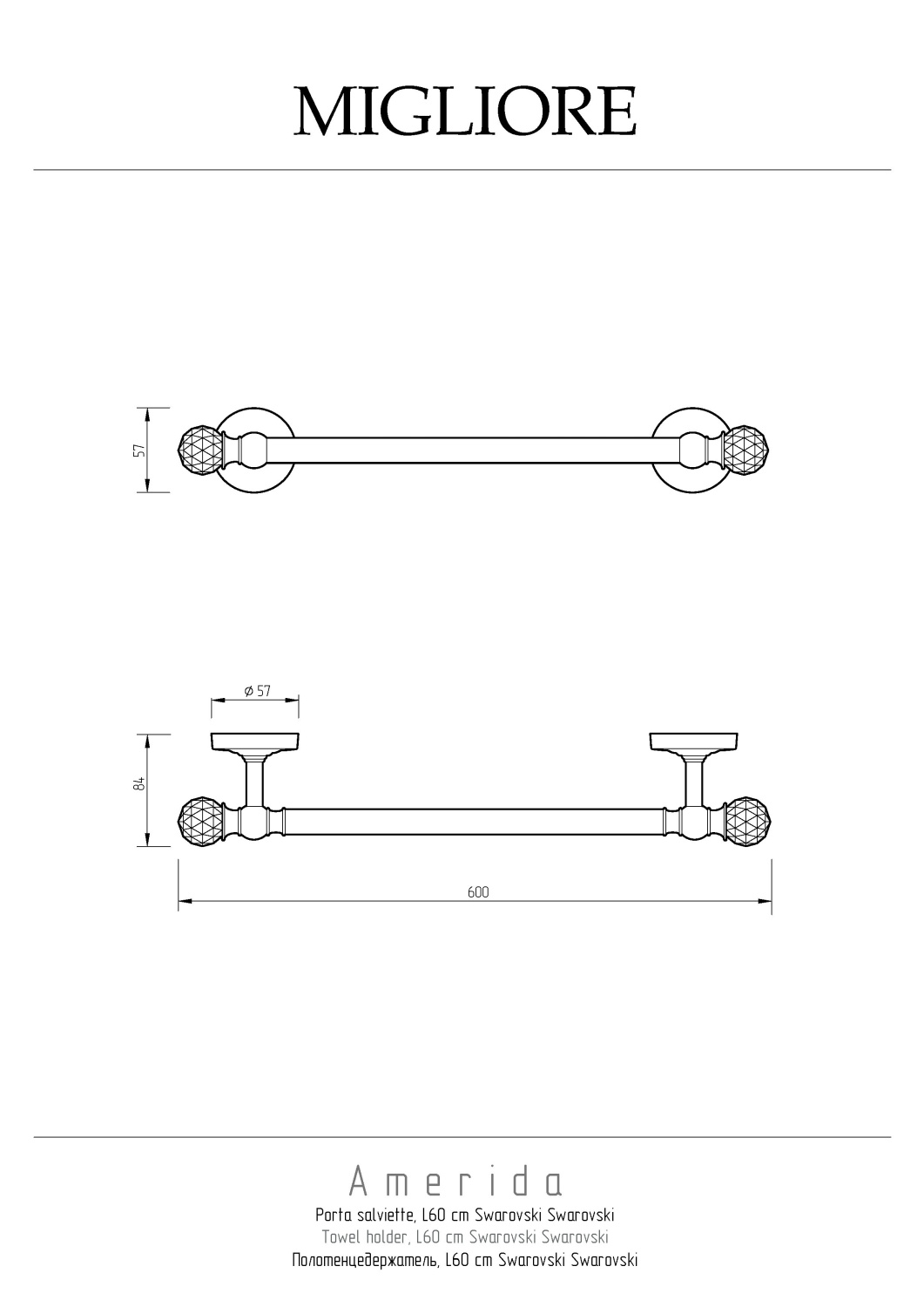 Закажите Migliore Amerida Полотенцедержатель 60 см, Swarovski, цвет: хром 16587 от производителя Migliore, коллекция Amerida в салоне европейской сантехники Дизайн Сантехники с быстрой доставкой по Москве. Представлены подробные характеристики и фотографии, которые позволят сделать правильный выбор и заказать товар.