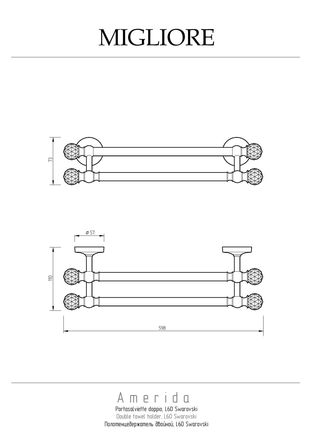 Закажите Migliore Amerida Полотенцедержатель двойной 60 см, Swarovski, цвет: золото 16606 от производителя Migliore, коллекция Amerida в салоне европейской сантехники Дизайн Сантехники с быстрой доставкой по Москве. Представлены подробные характеристики и фотографии, которые позволят сделать правильный выбор и заказать товар.