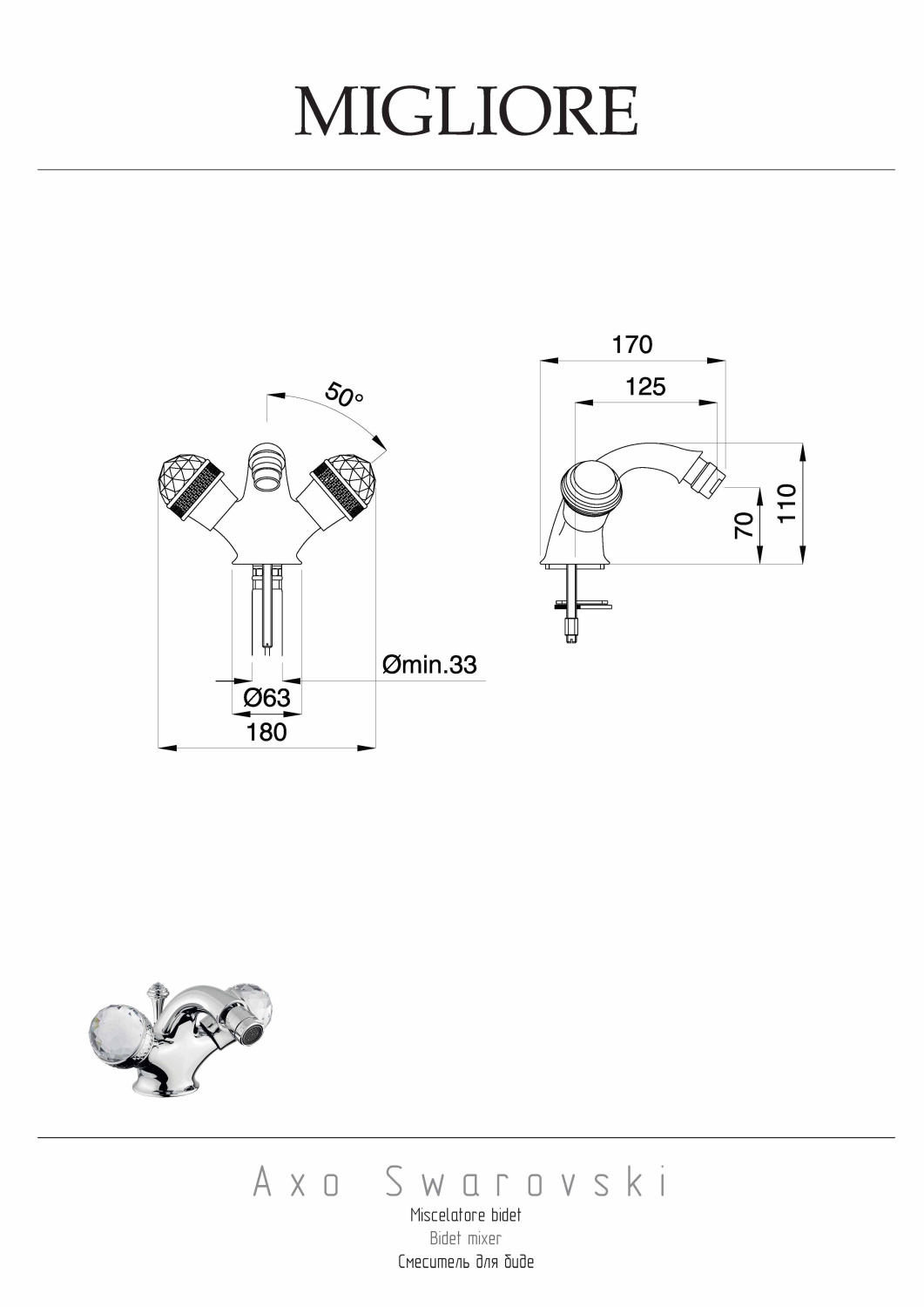 Migliore Axo Swarovski Смеситель для биде, цвет: бронза 18474 и другие сантехнические изделия бренда характеризует надежность, высокое качество и продолжительный срок службы. Изделие в стилистике арт-деко впечатляюще будет смотреться в различных цветовых решениях помещения.