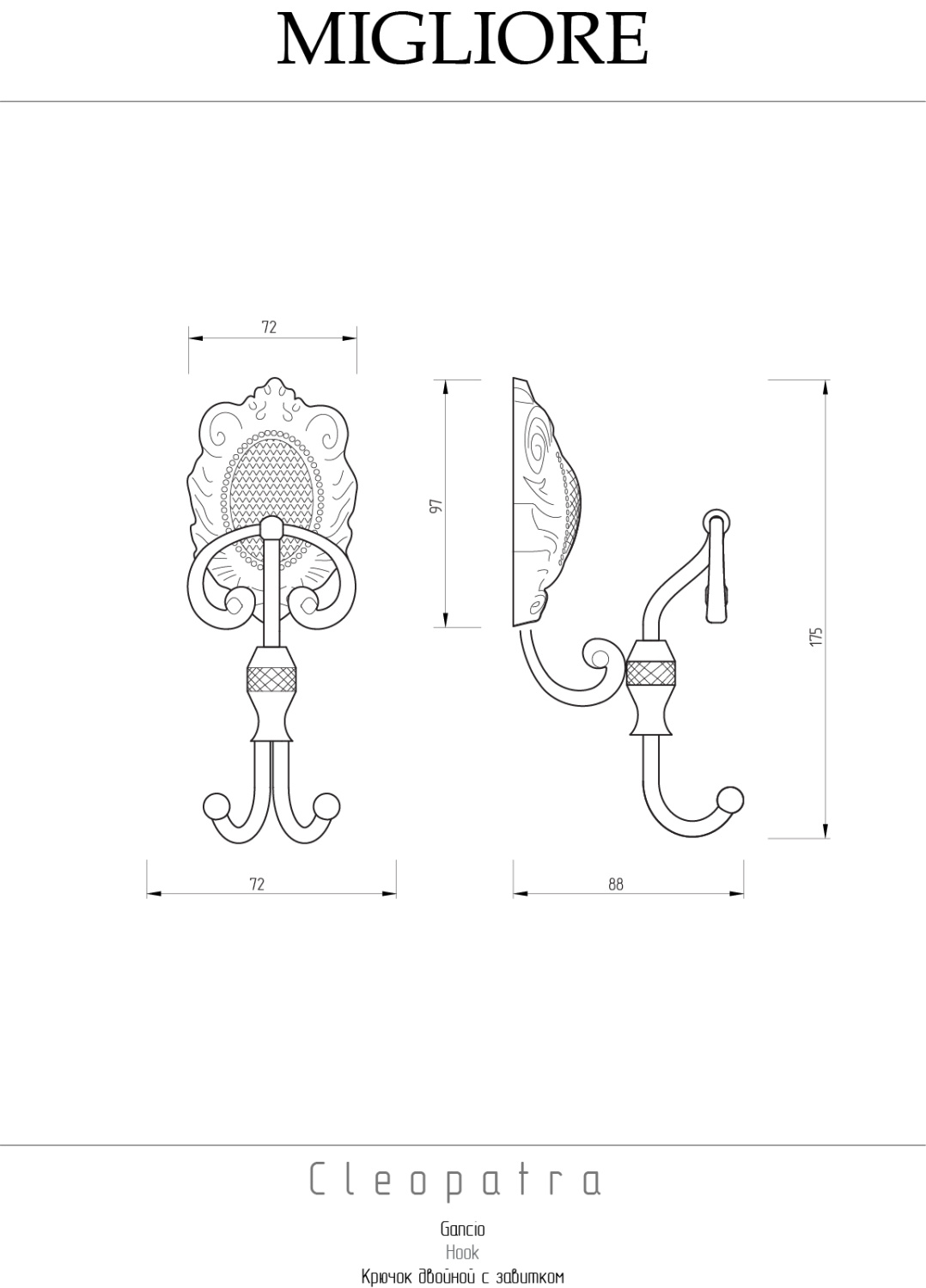 Закажите Migliore Cleopatra Крючок двойной с завитком, цвет: бронза 16633 от производителя Migliore, коллекция Cleopatra в салоне европейской сантехники Дизайн Сантехники с быстрой доставкой по Москве. Представлены подробные характеристики и фотографии, которые позволят сделать правильный выбор и заказать товар.