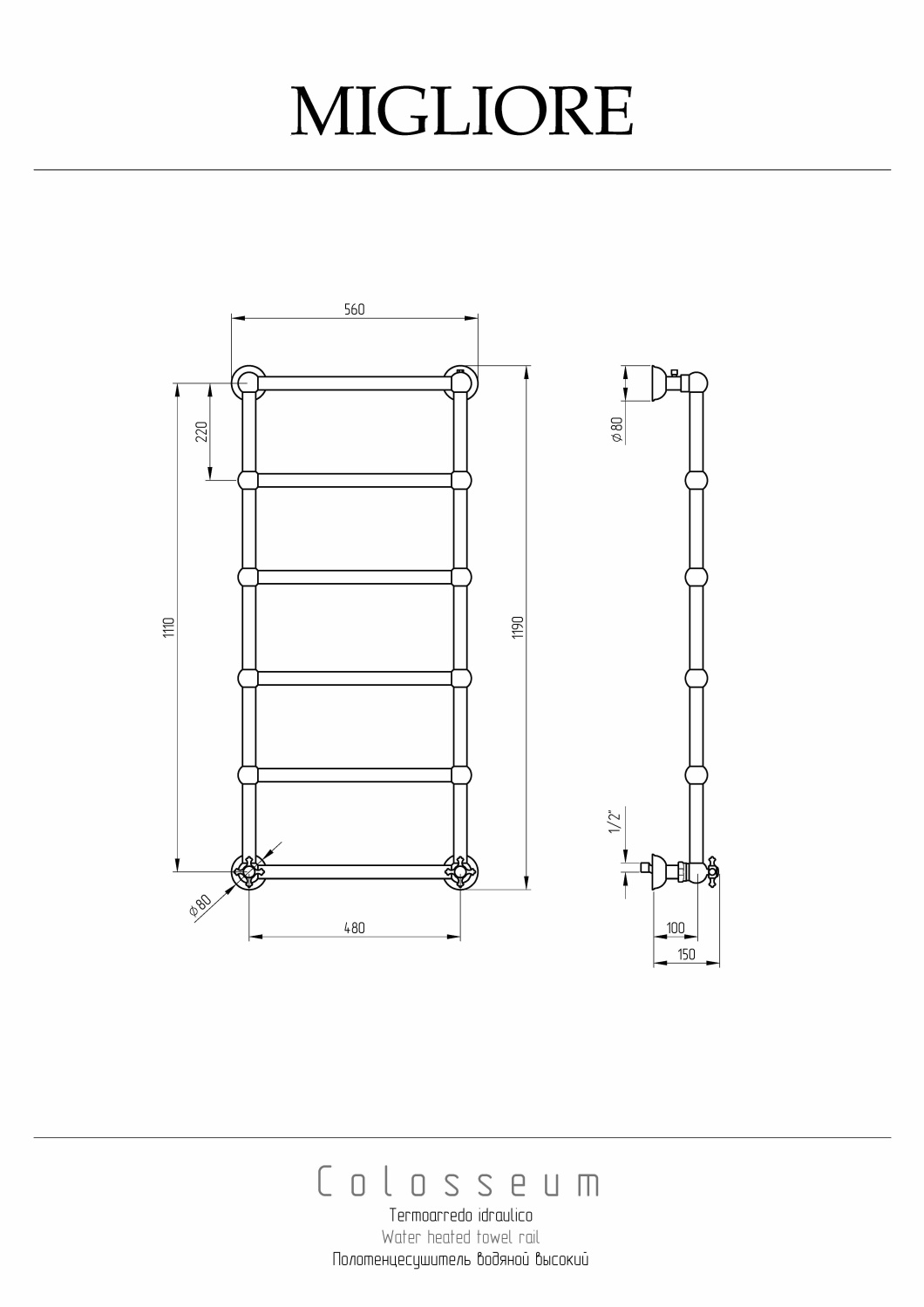 Закажите Migliore Colosseum Полотенцесушитель водяной для гвс 56x119h, цвет: золото 20290 от производителя Migliore, коллекция Colosseum в салоне европейской сантехники Дизайн Сантехники с быстрой доставкой по Москве. Представлены подробные характеристики и фотографии, которые позволят сделать правильный выбор и заказать товар.