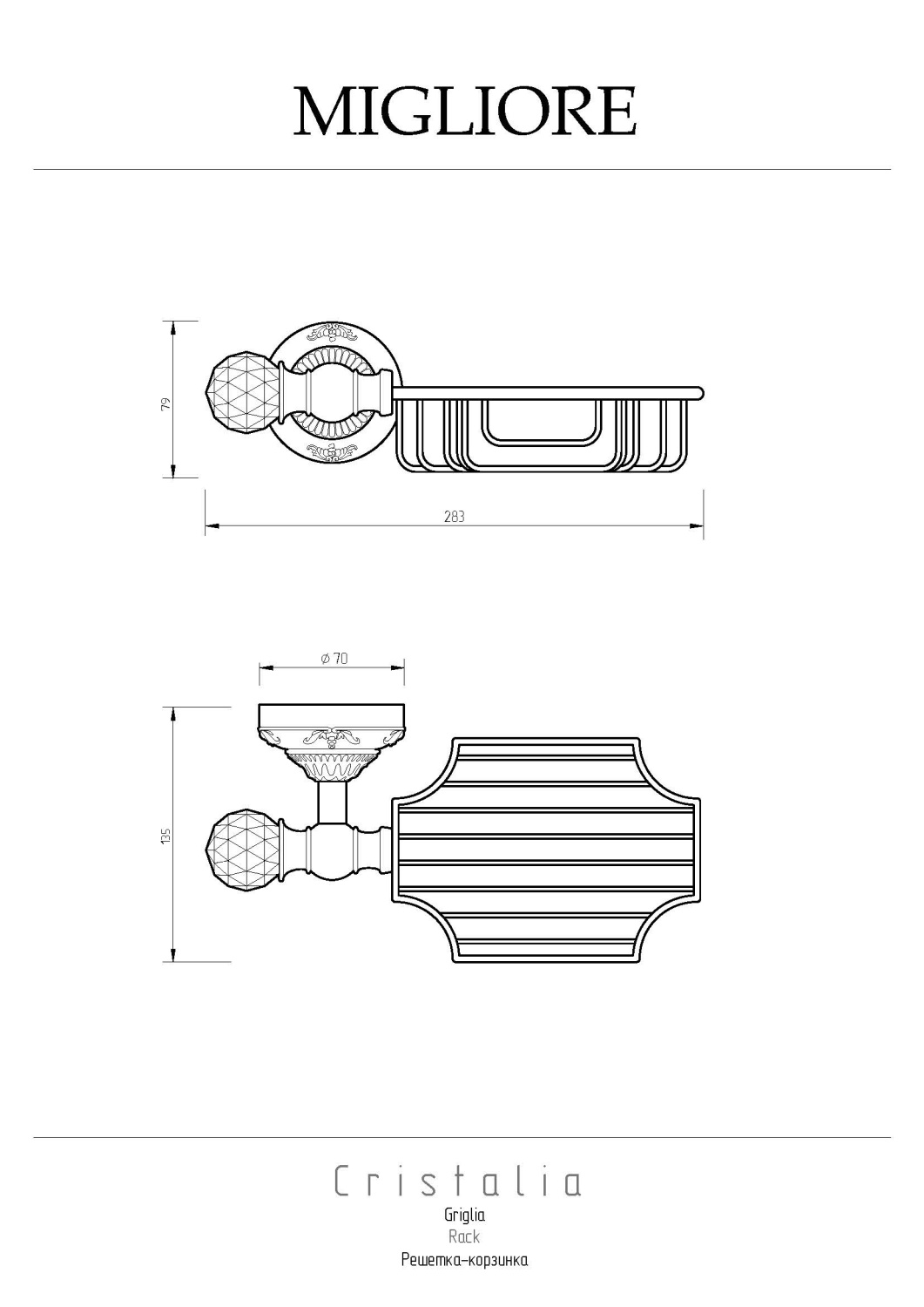 Migliore Cristalia Полка-корзинка настенная, Swarovski, цвет: хром 16813 и другие сантехнические изделия бренда характеризует надежность, высокое качество и продолжительный срок службы. Изделие в стилистике английская классика впечатляюще будет смотреться в различных цветовых решениях помещения.