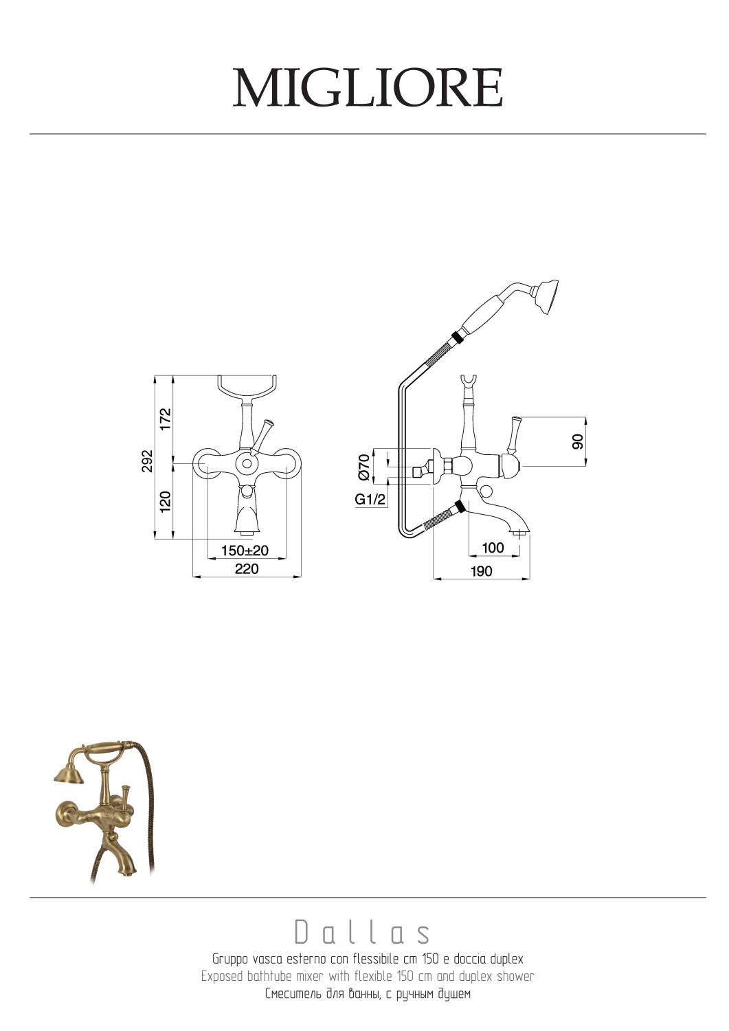Закажите Migliore Dallas Смеситель для ванны монокомандный внешний, цвет: бронза 18596 от производителя Migliore, коллекция Dallas в салоне европейской сантехники Дизайн Сантехники с быстрой доставкой по Москве. Представлены подробные характеристики и фотографии, которые позволят сделать правильный выбор и заказать товар.