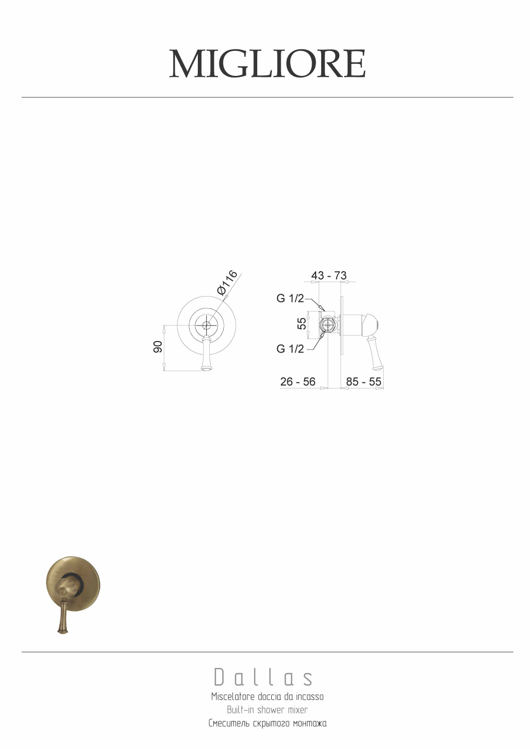 Migliore Dallas Смеситель скрытого монтажа монокомандный, цвет: хром 18604 и другие сантехнические изделия бренда характеризует надежность, высокое качество и продолжительный срок службы. Изделие в стилистике прованс впечатляюще будет смотреться в различных цветовых решениях помещения.