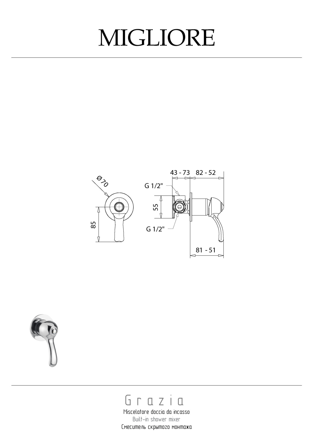 Закажите Migliore Grazia Смеситель монокомандный скрытого монтажа, цвет: хром 29687 от производителя Migliore, коллекция Grazia в салоне европейской сантехники Дизайн Сантехники с быстрой доставкой по Москве. Представлены подробные характеристики и фотографии, которые позволят сделать правильный выбор и заказать товар.