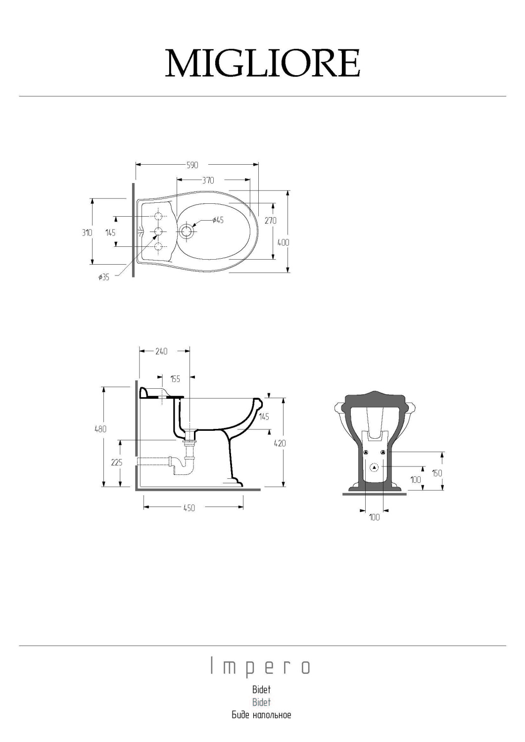 Migliore Impero Биде напольное 40x59x48h, керамика, цвет: белый 20781 и другие сантехнические изделия бренда характеризует надежность, высокое качество и продолжительный срок службы. Изделие в стилистике английская классика впечатляюще будет смотреться в различных цветовых решениях помещения.
