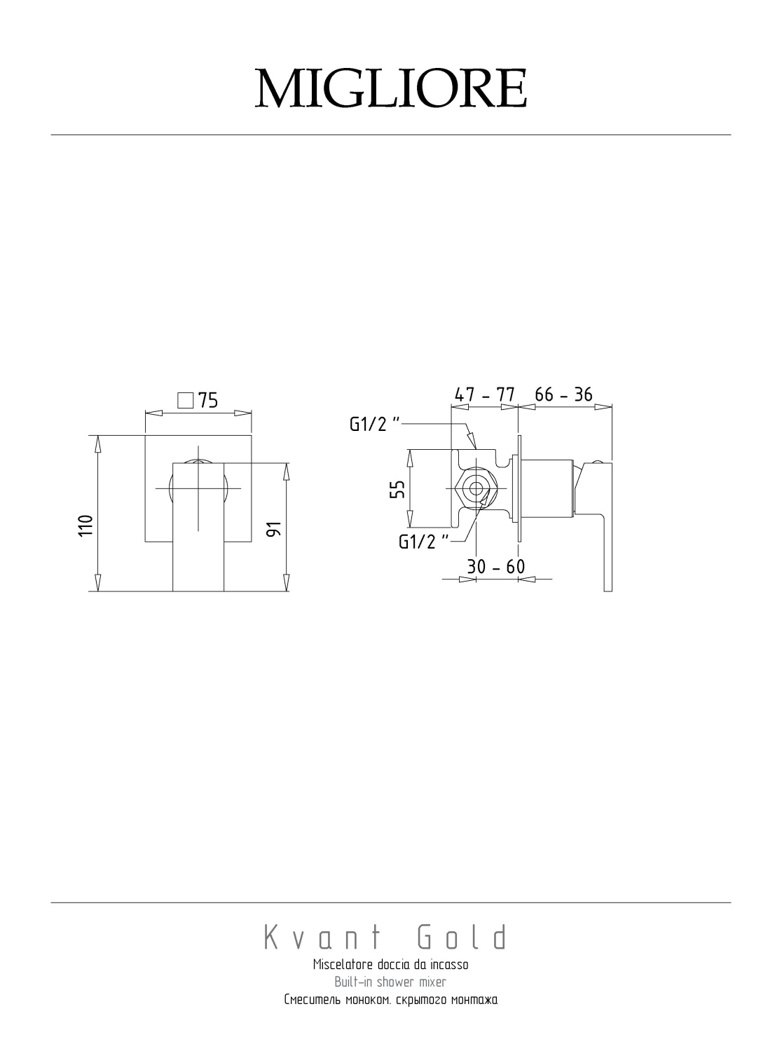 Migliore Kvant Gold Смеситель скрытого монтажа монокомандный, цвет: золото 25400 и другие сантехнические изделия бренда характеризует надежность, высокое качество и продолжительный срок службы. Изделие в стилистике hi-tech впечатляюще будет смотреться в различных цветовых решениях помещения.