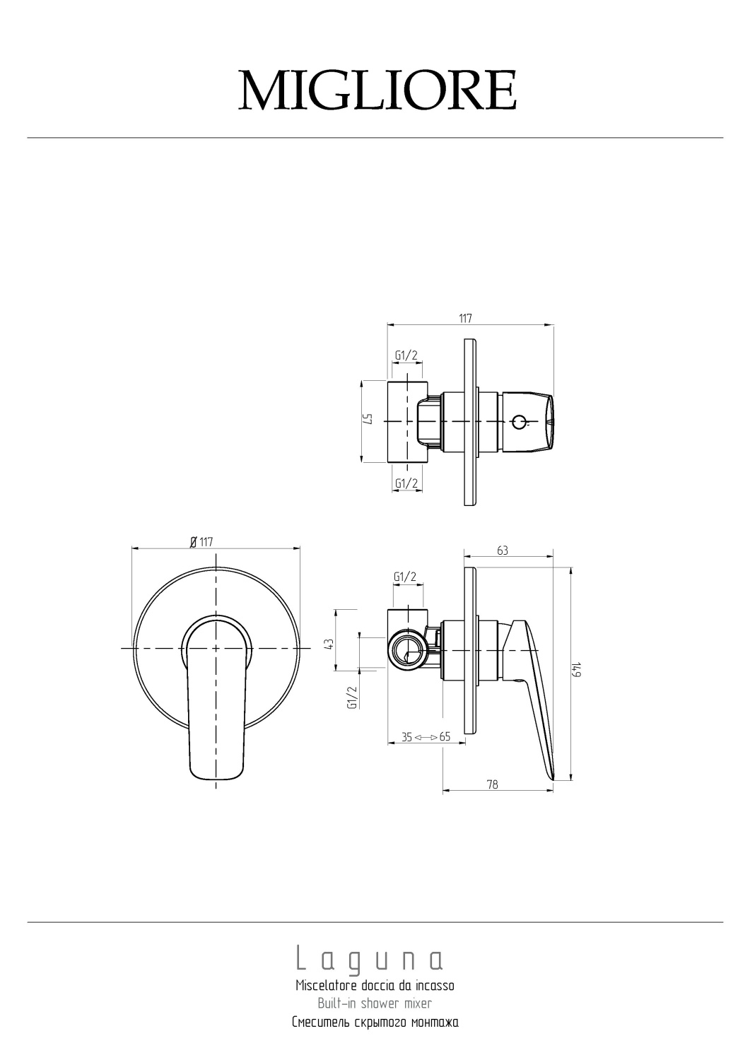 Migliore Laguna Смеситель скрытого монтажа монокомандный, цвет: хром 26085 и другие сантехнические изделия бренда характеризует надежность, высокое качество и продолжительный срок службы. Изделие в стилистике минимализм впечатляюще будет смотреться в различных цветовых решениях помещения.