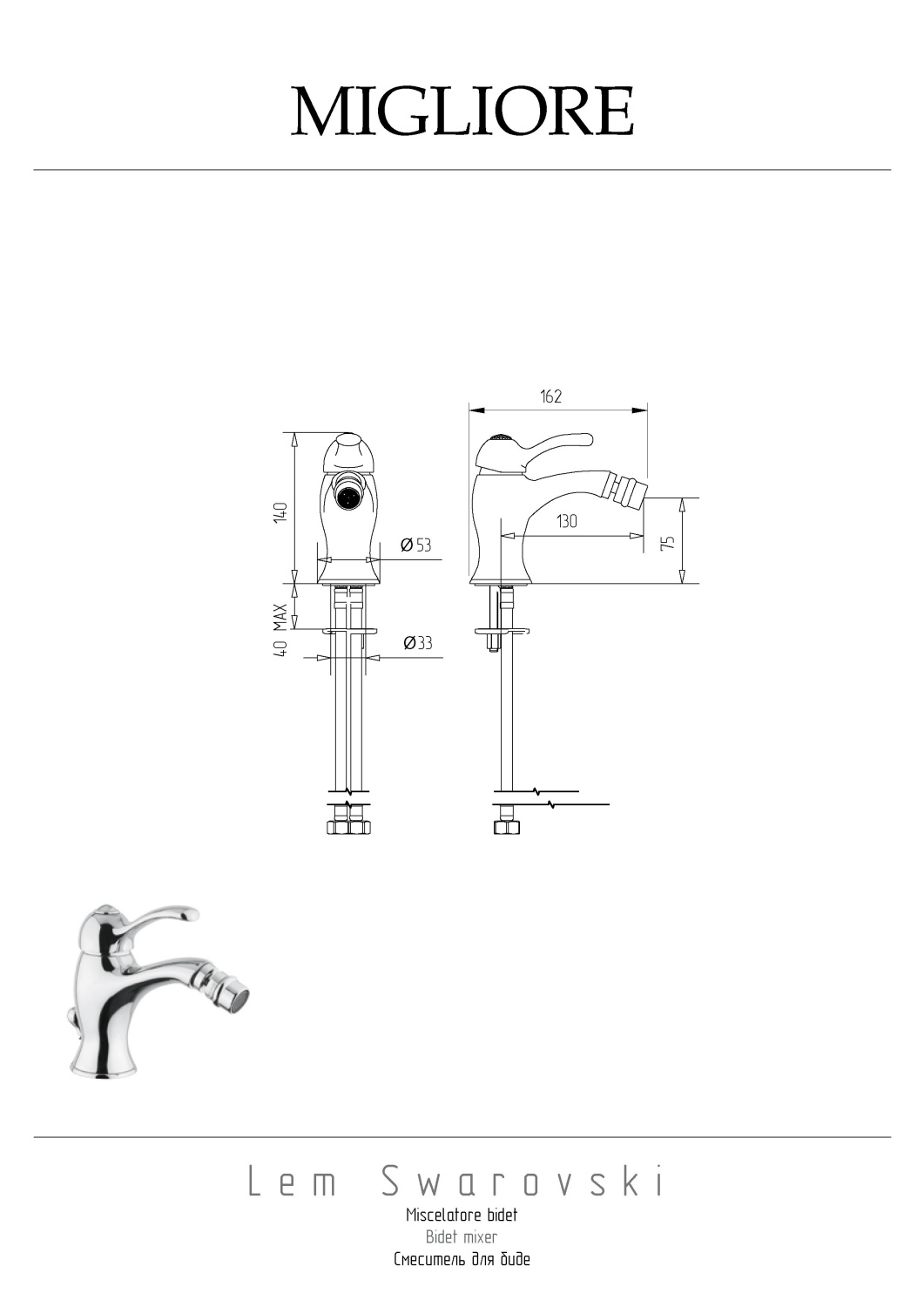 Migliore Lem Swarovski Смеситель для биде монокомандный, цвет: бронза 18873 и другие сантехнические изделия бренда характеризует надежность, высокое качество и продолжительный срок службы. Изделие в стилистике прованс впечатляюще будет смотреться в различных цветовых решениях помещения.