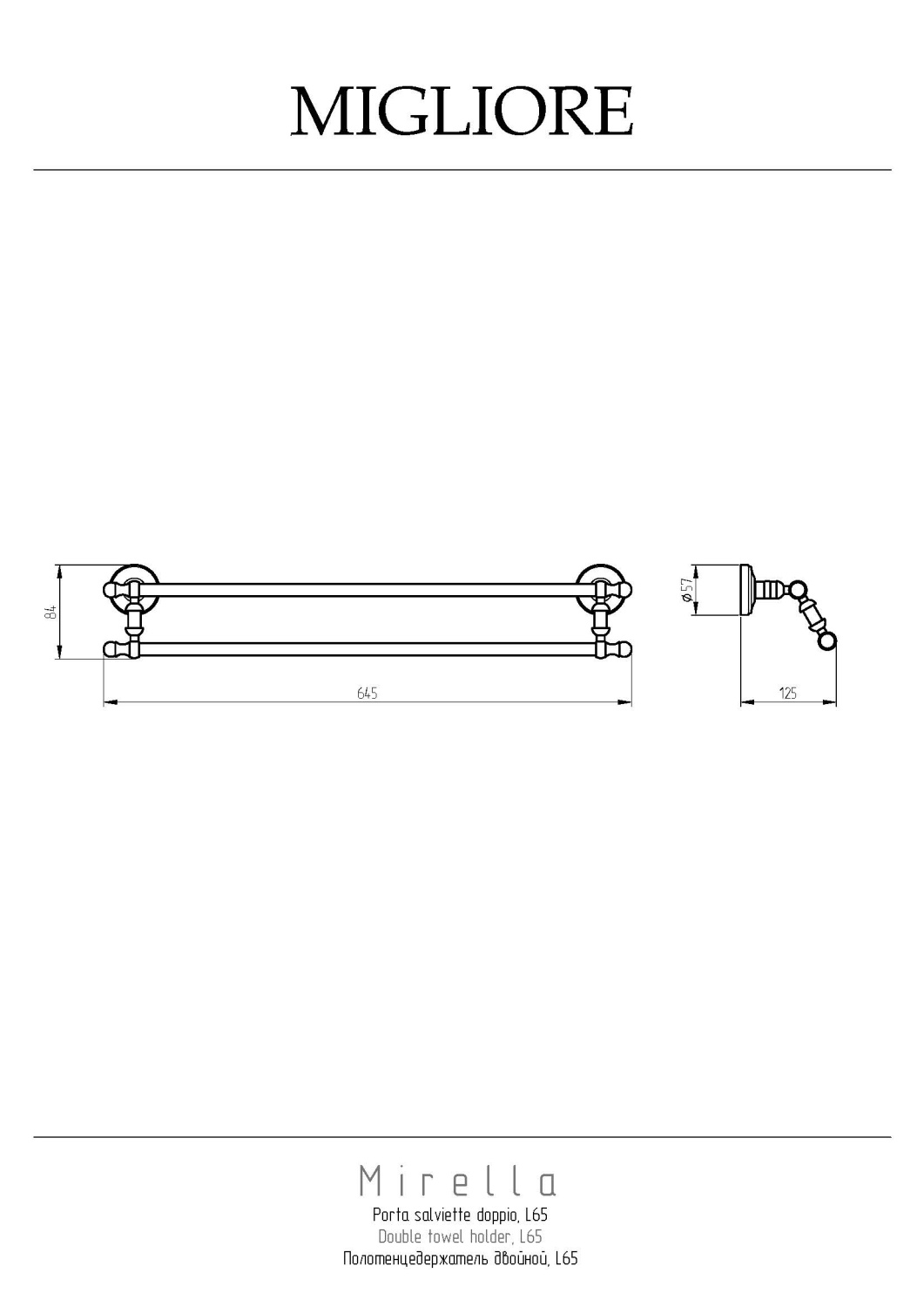 Закажите Migliore Mirella Полотенцедержатель двойной 62-65 см, цвет: бронза 17185 от производителя Migliore, коллекция Mirella в салоне европейской сантехники Дизайн Сантехники с быстрой доставкой по Москве. Представлены подробные характеристики и фотографии, которые позволят сделать правильный выбор и заказать товар.