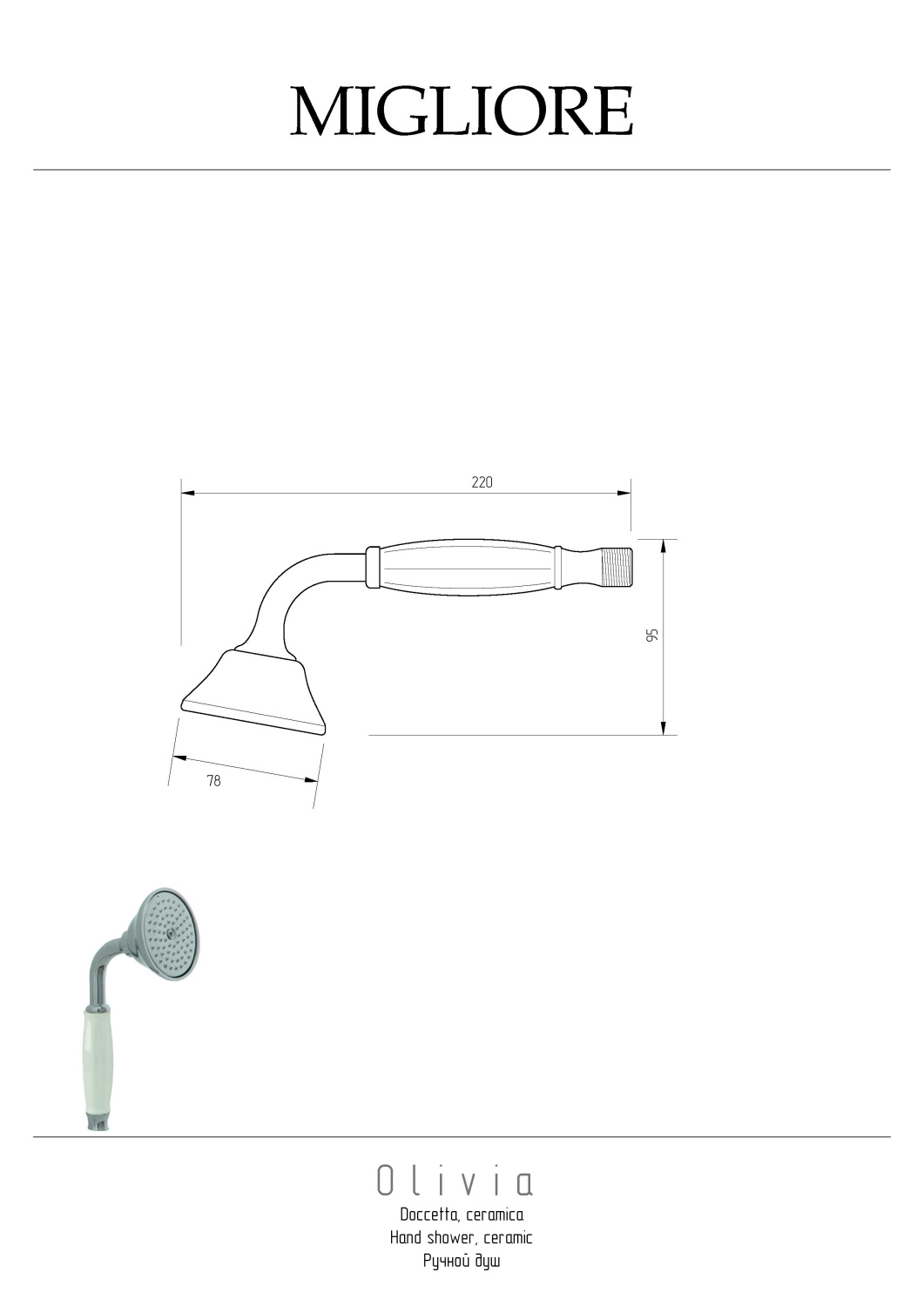 Закажите Migliore Olivia Ручной душ, цвет: белый/хром 19001 от производителя Migliore, коллекция Olivia в салоне европейской сантехники Дизайн Сантехники с быстрой доставкой по Москве. Представлены подробные характеристики и фотографии, которые позволят сделать правильный выбор и заказать товар.