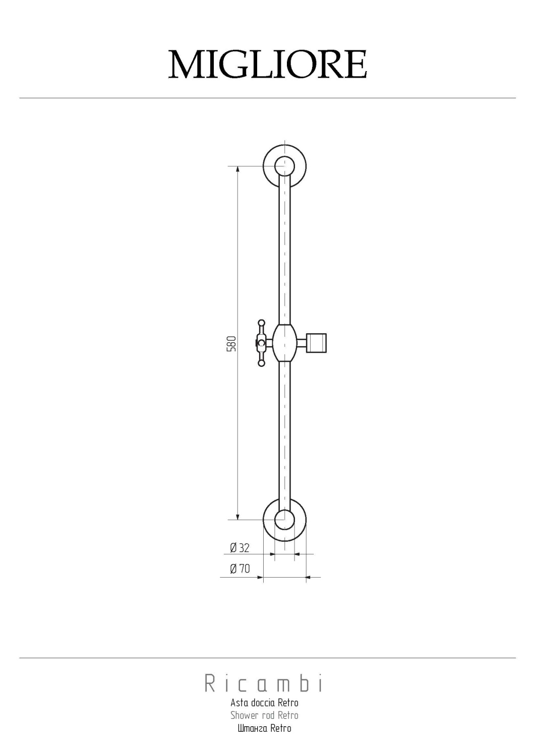 Migliore Retro Штанга душевая с держателем, цвет: золото 20192 и другие сантехнические изделия бренда характеризует надежность, высокое качество и продолжительный срок службы. Изделие в стилистике прованс впечатляюще будет смотреться в различных цветовых решениях помещения.