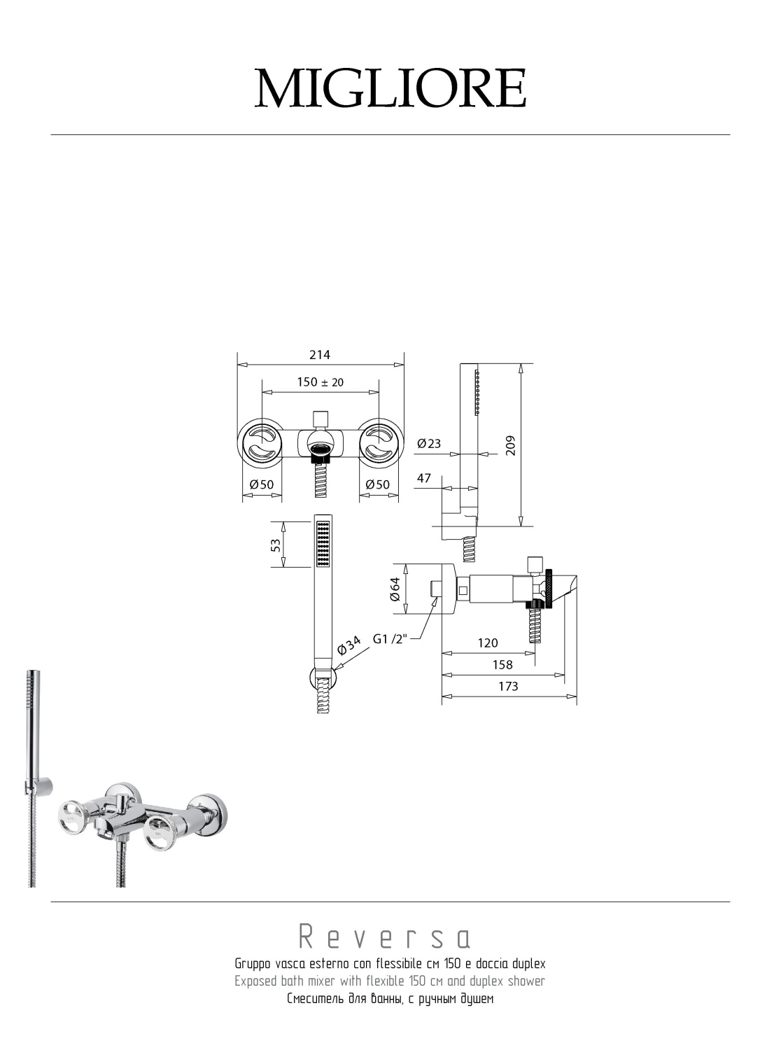 Migliore Reversa Смеситель для ванны внешний, цвет: хром 28211 и другие сантехнические изделия бренда характеризует надежность, высокое качество и продолжительный срок службы. Изделие в стилистике лофт впечатляюще будет смотреться в различных цветовых решениях помещения.