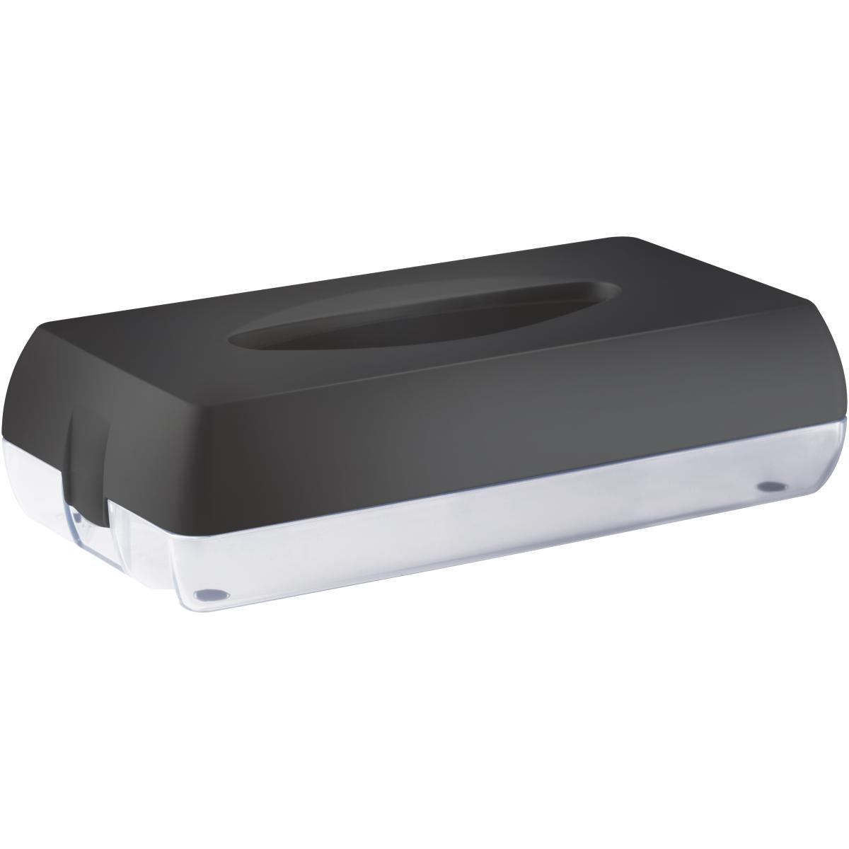 Стильный черный диспенсер для носовых платков сделан из специального черного матового пластика, который не только очень стильно смотрится, но и приятен на ощупь.