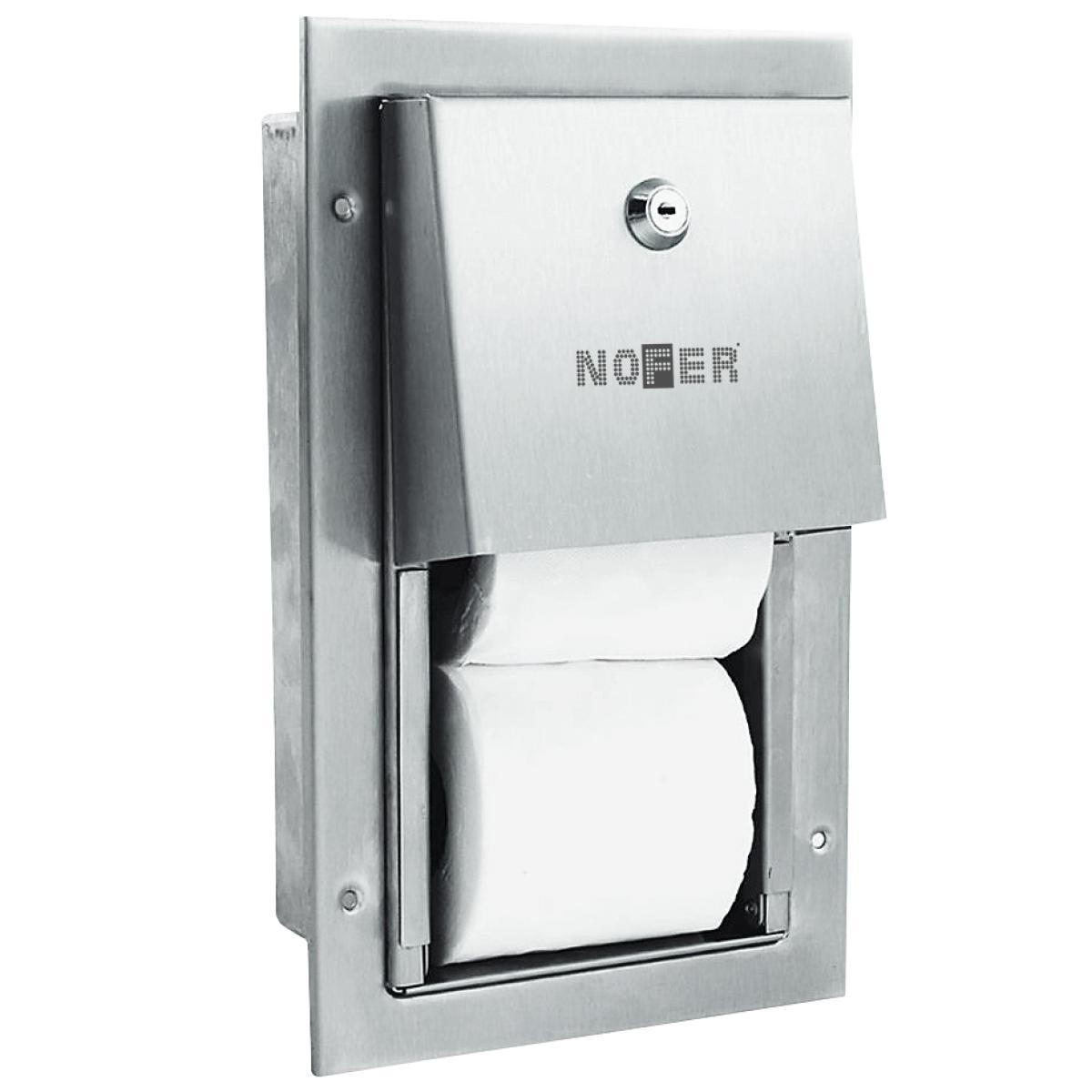 Nofer Держатель туалетной бумаги для общественных мест, встр. в стену, цвет: нержавеющая сталь браш. 05202.S и другие сантехнические изделия бренда характеризует надежность, высокое качество и продолжительный срок службы. Изделие в стилистике минимализм впечатляюще будет смотреться в различных цветовых решениях помещения.